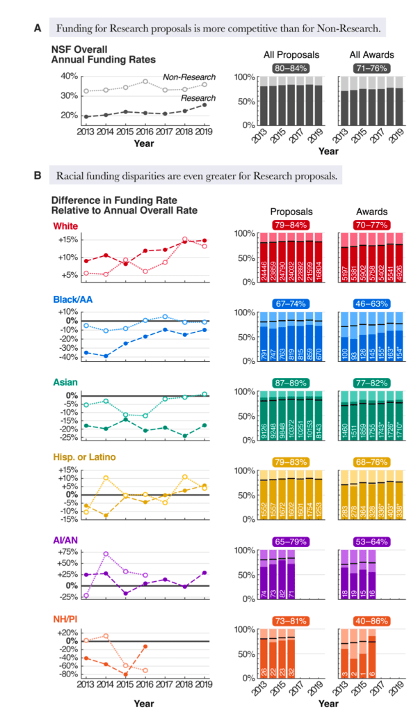 If you’re doing basic scientific research in the US, here’s a new must read. This preprint by Chen et al. dropped on Friday, entitled “Decades of systemic racial disparities in funding rates at the National Science Foundation.”