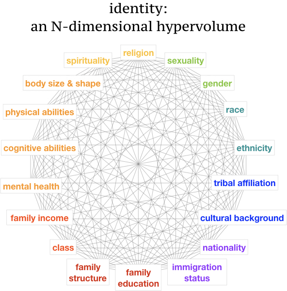 Figure 1: A person’s identity, like an ecological niche, is comprised of infinite dimensions, some of which are included in this depiction of “identity space”